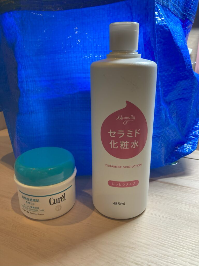 孫の肌にも変化が出て今度は、花王のキュレルクリームを購入、セラミド化粧水の上からキュレルクリームで覆うようにした。