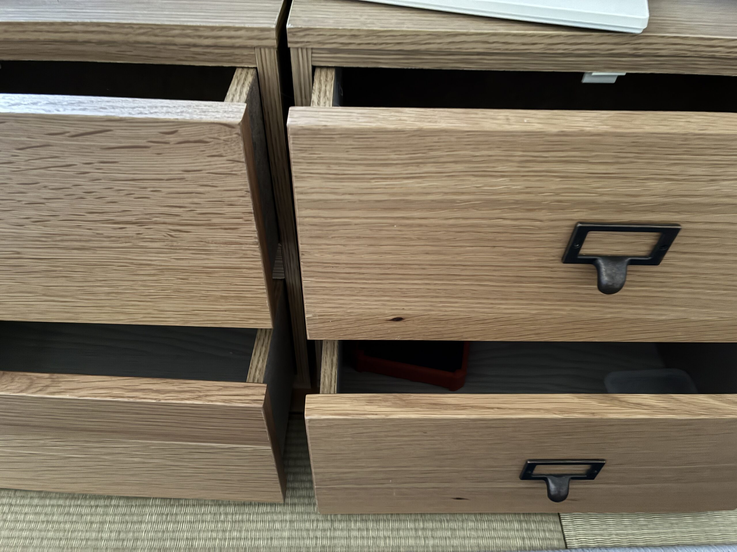 キューブボックス2個かび臭い、風に当てたりカビ取りスプレーをジャバジャバ振っても、やっぱりウッ⁇臭い……鼻が辛い、引き出しは空状態にしてるが、臭いがフワフワ漂い気分はダダ下がり。